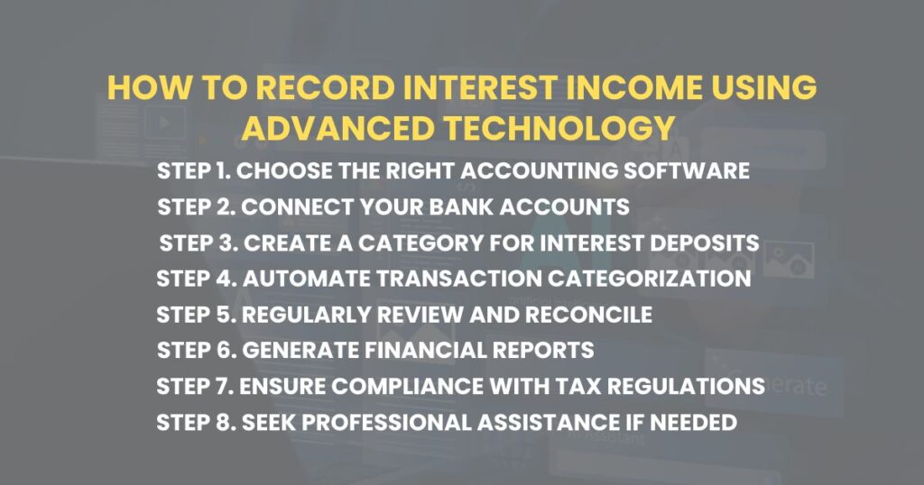 Keeping track of interest income correctly is essential for accurate financial records and meeting tax requirements. Advanced technology can streamline this process, reduce errors, and enhance financial management. Here’s a step-by-step guide on how to effectively record interest deposits using modern accounting technology: