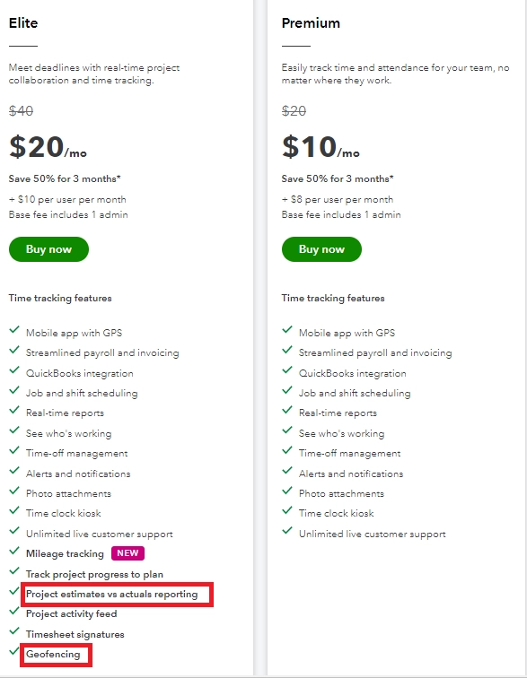 Quick Books Time Elite vs Quick Books Time Premium